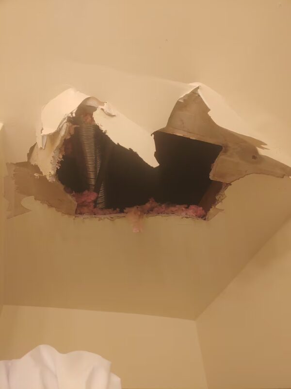Mold infestation was a common complaint among the families. Sections of the McCarthy family’s garage ceiling collapsed on two occasions in 2023 and 2024, revealing mold, water damage, decaying trusses and extensive termite tunnels. When the military family moved to temporary housing in May 2024, they woke up in the middle of their first night covered in bugs, according to the complaint. So they returned to their original house, where five months later, water began pouring from their kitchen’s light fixtures, saturating the ceiling, dripping down walls and seeping through cabinets.